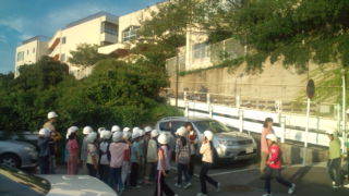 学園にいます。第二次避難場所に移動する訓練をしています。17:10