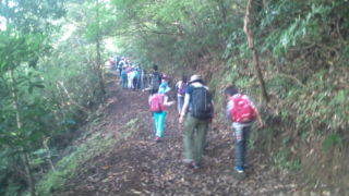 富山山頂を下山しています。途中で水分補給をしています。13:10