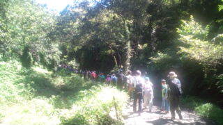 注意事項を確認し、富山山頂に向かってハイキングのスタートです。10:35