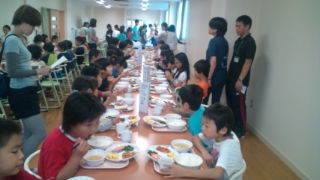 学園にいます。子どもたちが、朝食を食べ始めました。7:00