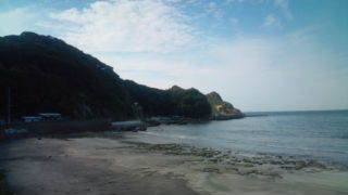鵜原理想郷に向けて出発です。目的地は背景の山の上です。9:05