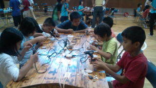 学園にいます。体育館でネイチヤークラフトを行っています。15:30