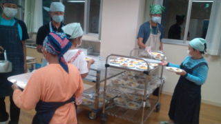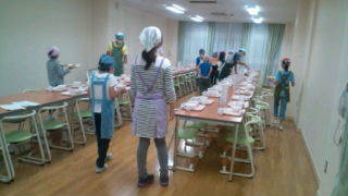 学園にいます。係の子どもたちが夕食の準備をしています。慣れてきたので、能率的に準備を進めています。17:50