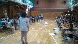 学園にいます。体育館でのネイチヤークラフトが終わりました。16:40