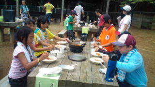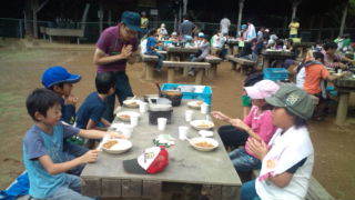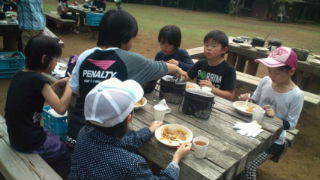 内浦山県民の森にいます。盛り付けが終わった班から食べ始めました。11:25