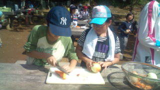 内浦山県民の森にいます。カレーライス作りの活動が始まりました。10:00
