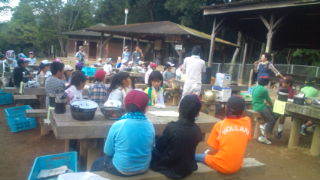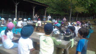 内浦山県民の森にいます。カレーライス作りの説明を聞いています。9:40