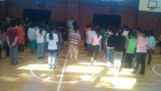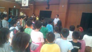 学園にいます。閉園式を行っています。予定の5分前に式を始めることができました。8:35