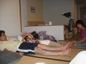 東京スポーツ文化館に戻り、一息ついています。この後、食事をしたり、お風呂に入ったりして1日を終えました。