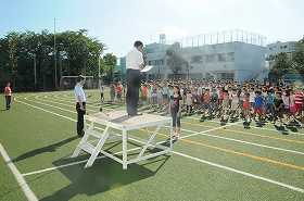 今朝は、校長が季節の移り変わりの話をした後で、平和祈念標語の表彰を行いました。