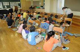 「バディネリ」を聞いた後で、感想をカードに書いています。