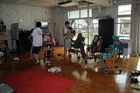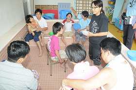 わかたけプールで「釣りゲーム」をしながら数の学習をします。その準備をしています。