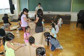 みんなで協力して、共同作品を作っています。