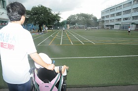 わかたけ学級の子どもたちが下校します。バスが出るまで、クラブ活動の様子を見ています。