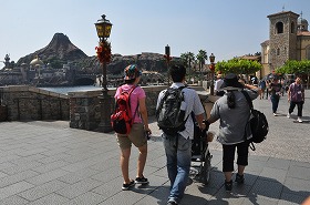 ディズニーシーにいます。お昼ご飯を食べる場所に移動しています。12:45