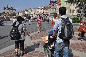 ディズニーシーにいます。お昼ご飯を食べる場所に移動しています。12:35