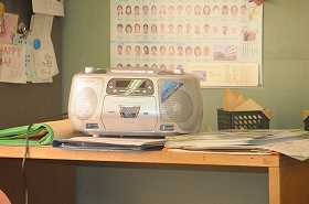 テープレコーダーから流れている話を聞いて、問題に答えています。