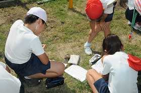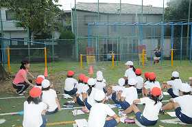 鉄棒の回り方の練習をしています。