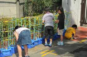 花の終わった朝顔から種を取っています。