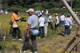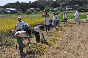 東松山の田んぼにいます。稲刈りをしています。10:45
