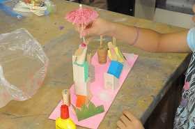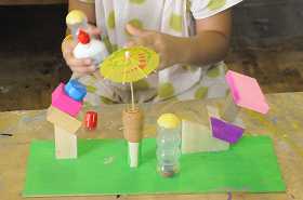 「トーテムポールの町」をテーマに、好きな材料を組み合わせながら、トーテムポールの楽しい町を作っています。