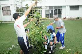 夏の後片付けとして、畑の夏野菜を抜いています。