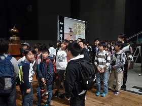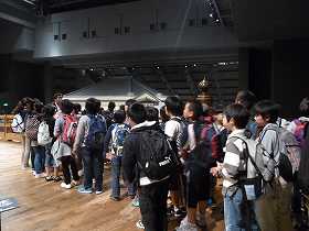江戸東京博物館内をグループで見学します。日本橋からスタートです。