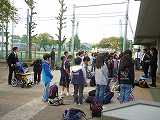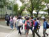 今日は、6年が社会科見学に行きます。まず出発式をしています。