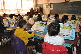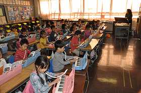 「なかよし」を階名で歌った後で、鍵盤ハーモニカで演奏しています。