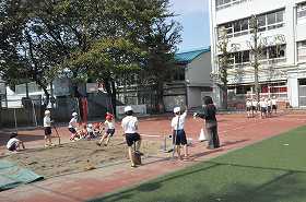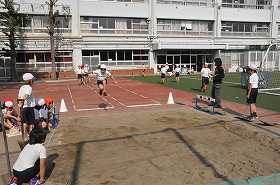 練習の成果を生かして、走り幅跳びの練習をしています。