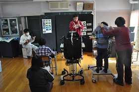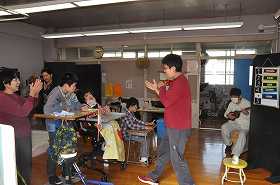 朝の会で、「おはよう」の歌を歌っています。