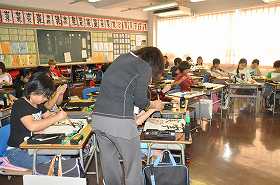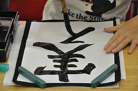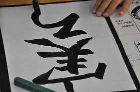毛筆で「実る」の練習をしています。