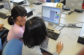 コンピュータに写真を取り込み、絵日記を作っています。