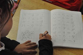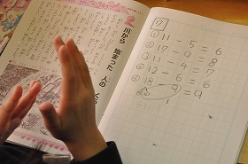 ひき算の計算問題を解いています。