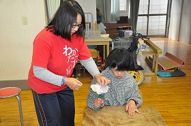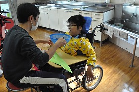 わかたけ学級の子どもたちが、共同作品「花の咲く丘」を作っています。