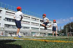 後半は、大なわとびをしています。