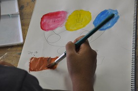 たくさんの色を使って木を書くための練習しています。