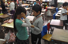 英語でゲームをしながら簡単な会話をしています。「I like …」のの言葉が聞こえてきます。