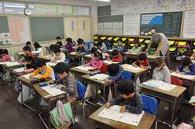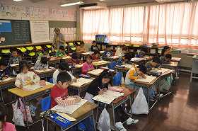 ていねいに漢字を書いたり、読み方を書いたりする練習をしています。