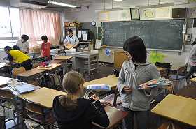 比例と反比例の問題に取り組んでいます。このクラスに入る直前にチャイムが鳴り、終わっていました。