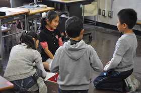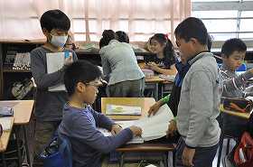 自分だけのごんぎつねを書くために、チームで作戦を立てています。