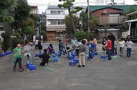 朝顔のツルを使ってリースを作るために、ツルをまとめています。