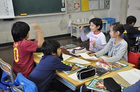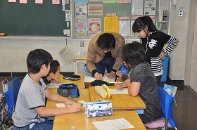 学習新聞作りをしています。まず、新聞の紙面構成を考えています。