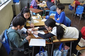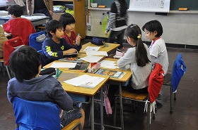 学習新聞作りをしています。まず、新聞の紙面構成を考えています。