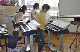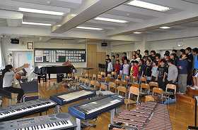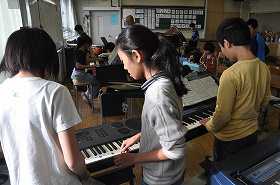 合唱の練習をしています。合唱の後は、合奏のパート練習をします。