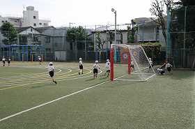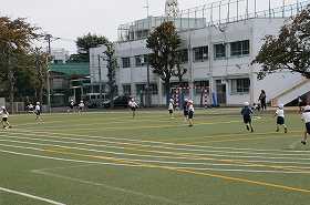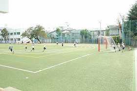 次は、校庭をいっぱい使って鬼あそびをしています。
