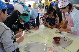 調理実習でポテトサラダを作っています。