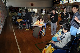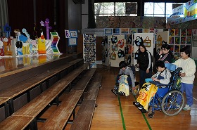 わかたけ学級の子どもたちが、展覧会の作品を鑑賞しています。