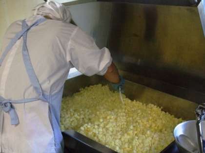 りんごを煮て、生地を練って、生地をのばして巻いて、切って卵をぬって焼いて・・・と給食室は朝早くから大忙しの1日でした。