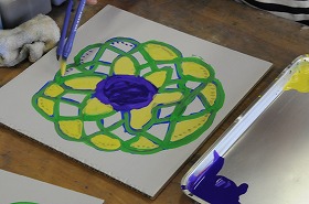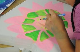 「わたしの花」をテーマに、花にぴったりの画用紙を選んで、私だけの花を描いています。